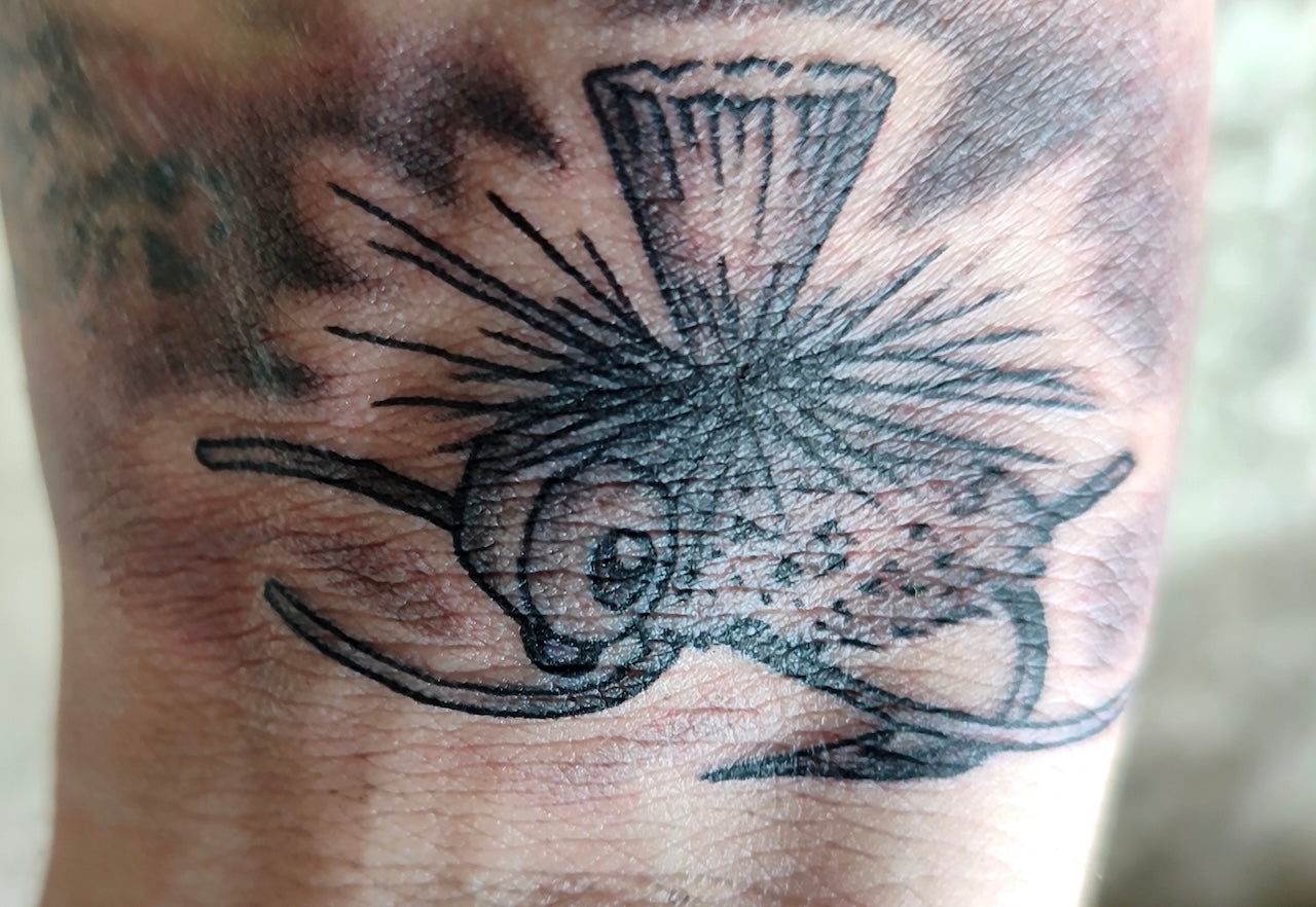 We love fooling fish and the art of design and creation. Our unique fly designs are tied on the strongest finest Japanese hooks, and also utilize our durable signature materials. Each one is hand crafted and a product of decades of crying, deportation, fish catching, testing, tweaking and finally perfection. So get ready for your next fishing adventure and feel that fishy artistic love. Select from our vast signature fly range or just sample just a couple of our age-old, well proven, fly designs. And then check out our range of adventurous non fiction, fun books and sexy merchandise. Supporting this fisherman & artist directly. You will ultimately be giving back. "Sharing that passion & fishy love." Thank you all. STU & TRIGGER x