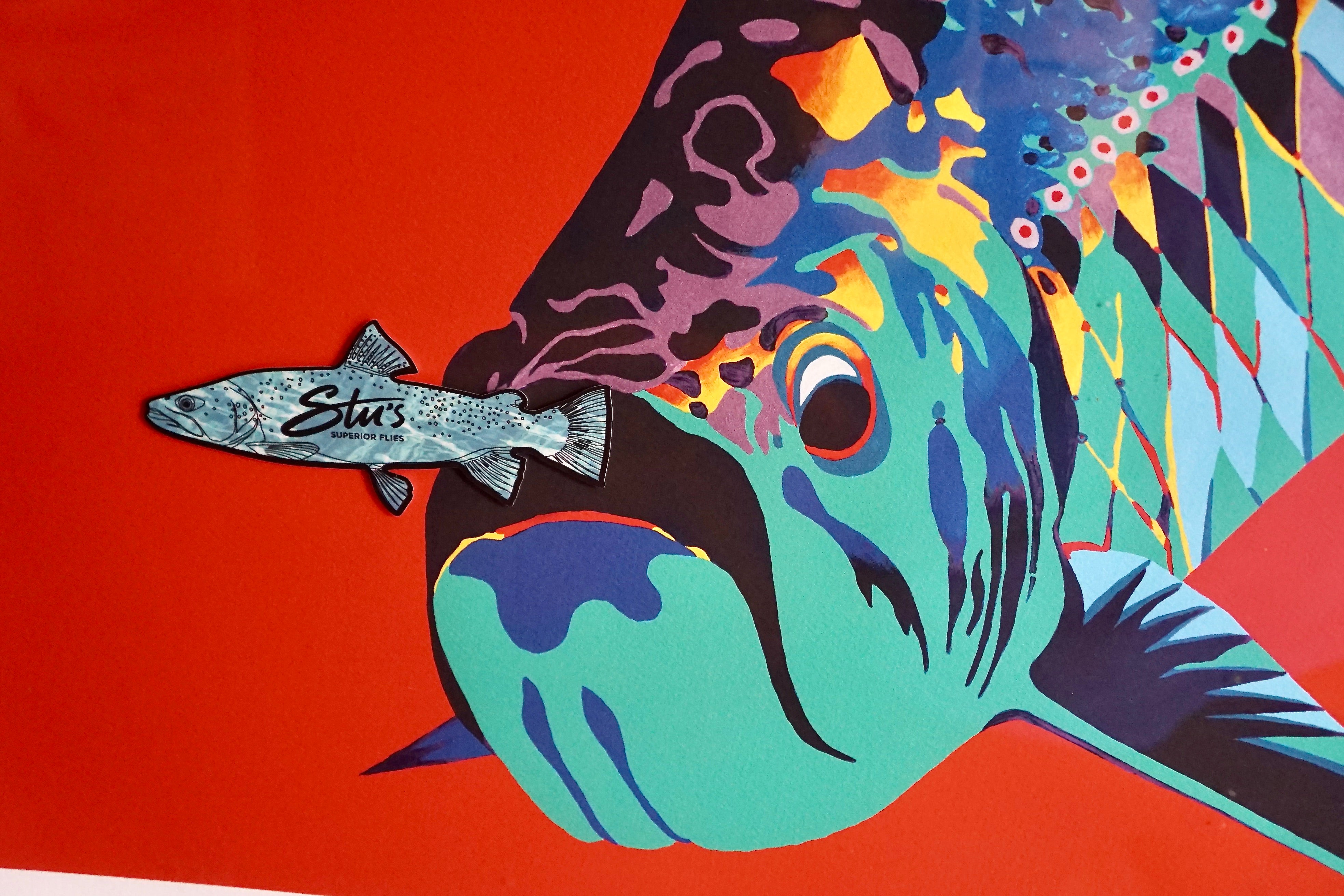 We love fooling fish and the art of design and creation. Our unique fly designs are tied on the strongest finest Japanese hooks, and also utilize our durable signature materials. Each one is hand crafted and a product of decades of crying, deportation, fish catching, testing, tweaking and finally perfection. So get ready for your next fishing adventure and feel that fishy artistic love. Select from our vast signature fly range or just sample just a couple of our age-old, well proven, fly designs. And then check out our range of adventurous non fiction, fun books and sexy merchandise. Supporting this fisherman & artist directly. You will ultimately be giving back. "Sharing that passion & fishy love." Thank you all. STU & TRIGGER x