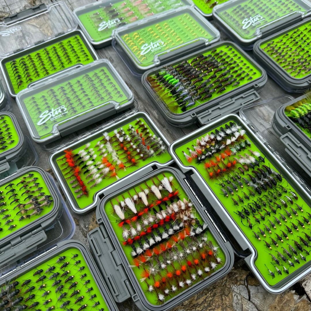 This site is filled to the rafters with essential flies for your next fishing adventure. Either choose the exact fly you want or hunt out a mixed pack which can be loaded into our wicked fly boxes. Or you can even get Stu to put together a Custom Fly Pack for you!